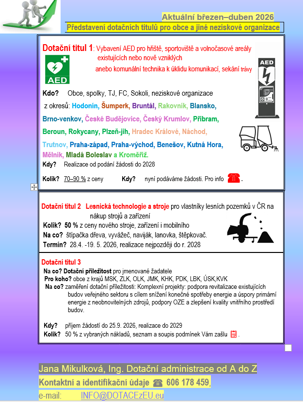 Dotační příležitosti v dubnu 2026 pro obce a její organizace.